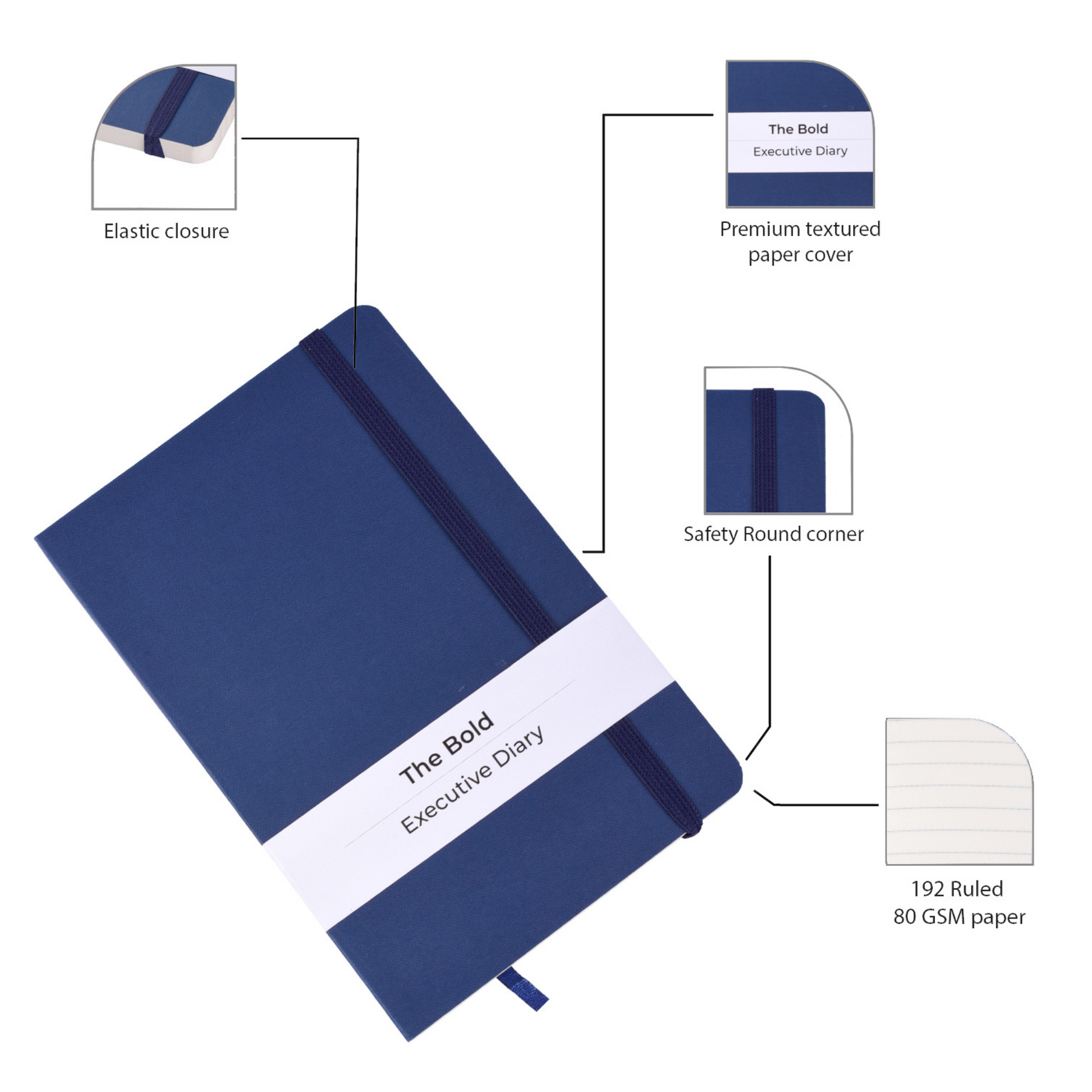 Introducing our exquisite A5 Premium Textured Paper Cover Diary from the Executive Series by Papboo, a masterpiece of craftsmanship and elegance. With its sleek A5 size, this diary fits perfectly into your everyday carry, ensuring that you're always ready to capture inspiration wherever it strikes.Unveil its imported textured paper cover, a testament to sophistication and refinement. As you flip through its generous 192 ruled pages, crafted from premium 80 GSM natural shade paper, you'll experience a writing surface that's smooth to the touch and gentle on the eyes.But it's not just about the paper—our diary is designed for convenience and durability. The elastic closure keeps your thoughts secure, while the thread bookmark ensures that you always find your place effortlessly. Plus, with four vibrant color options to choose from—red, blue, green, and black— you can select the perfect shade to complement your style and personality.Whether you're jotting down ideas, making to-do lists, or penning your next masterpiece, our diary is the perfect companion for your creative journey.Elevate your writing experience with Papboo's Executive Series A5 Premium Textured Paper Cover Diary—a fusion of style, functionality, and quality craftsmanship.