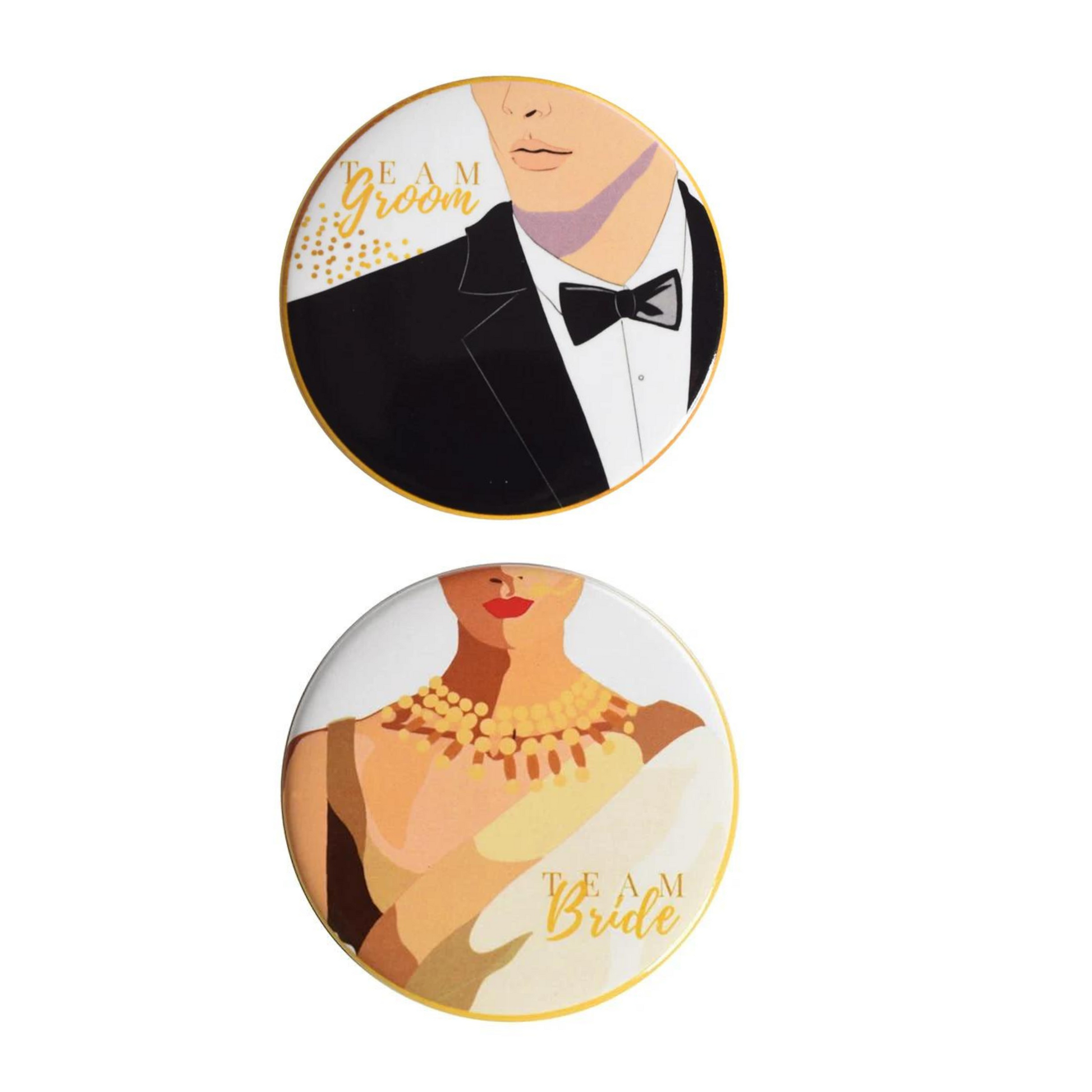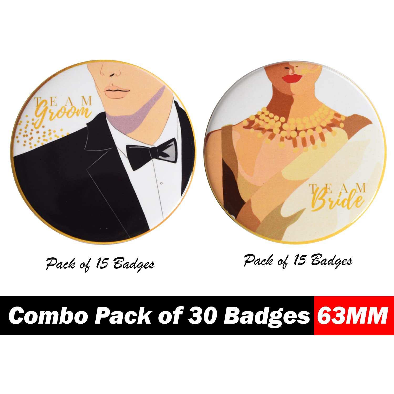 Make your wedding celebrations even more special with our classy badges. They're not just badges; they're a symbol of your love and style. Order your set now and add a touch of elegance to your wedding festivities! 🥂🎨