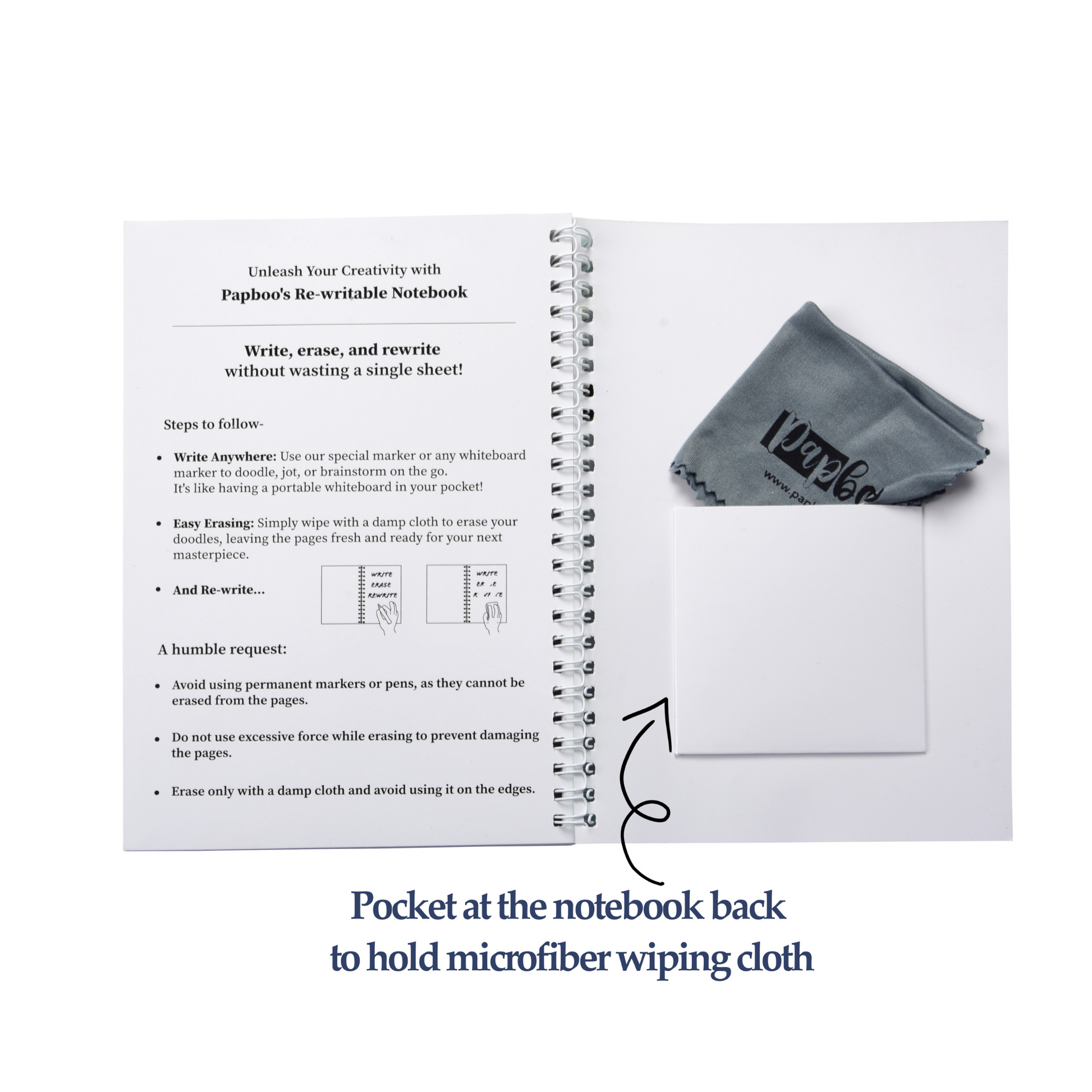 Easy Erasing: Comes with a microfiber cloth, allowing you to easily erase and reuse pages, maintaining a clean and fresh look.