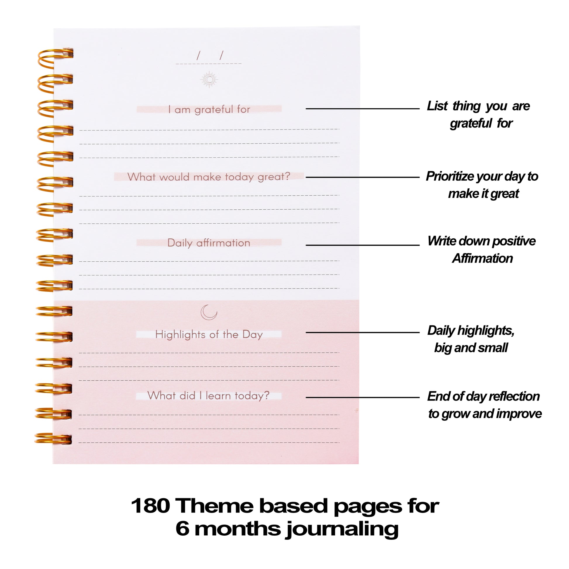 📆 Undated, Simple, and Effective: Kickstart your day with appreciation and end it with profound reflection using our wellness journal. With enough pages to last you 6 months, it's packed with thoughtfully designed activities, including gratitude exercises, daily highlights, inspirational quotes, daily affirmations, and self-reflection.