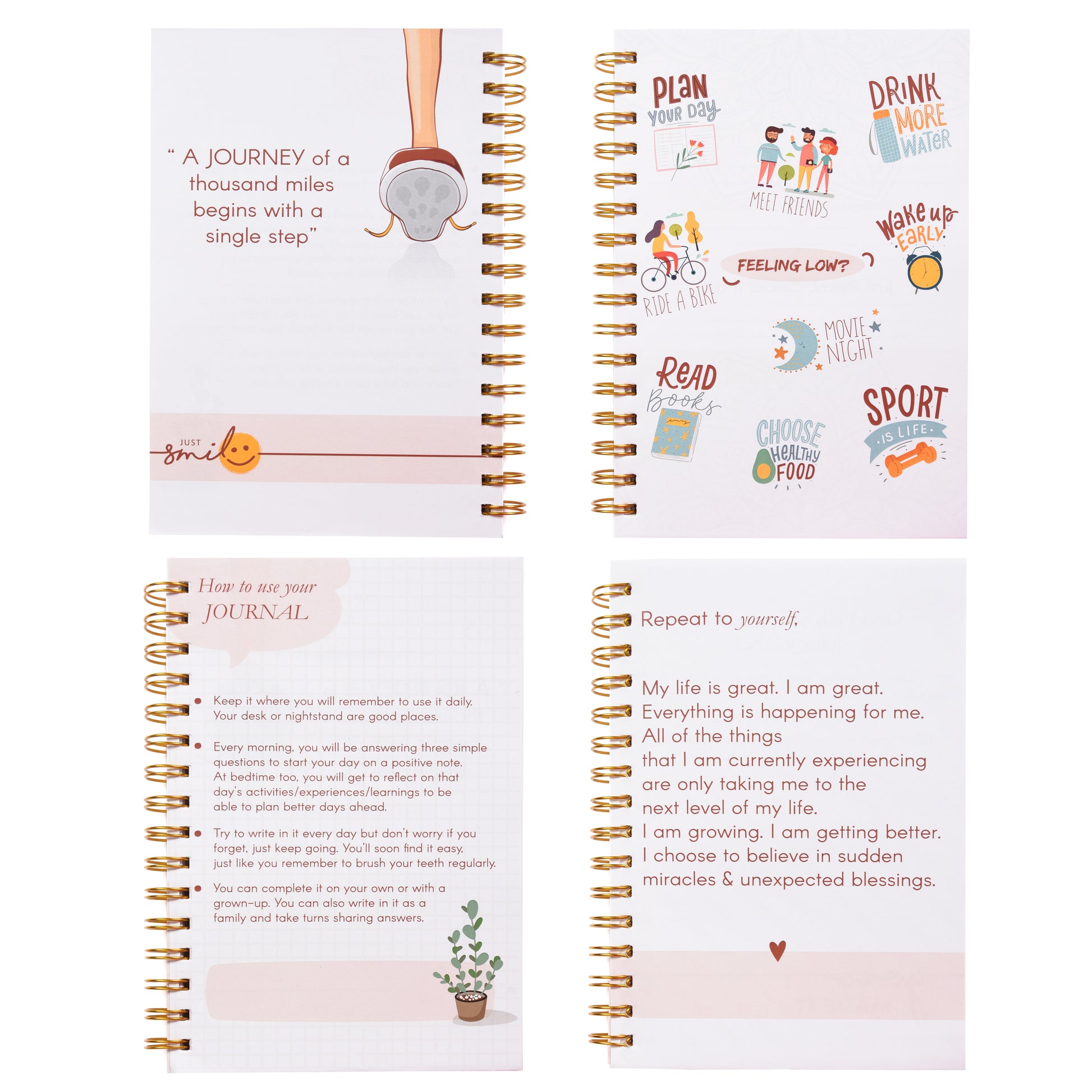 🌟 Unique Features: Our gratitude journal boasts a quality hardcover with a Golden Spiral, giving it a premium touch. The undated planner, crafted from premium paper, ensures a smooth writing experience without any ink bleeding. Plus, there are 2 sticker sheets packed with adorable stickers that you can use anywhere in the journal. Need a place to store important documents? It has a back pocket for that too!