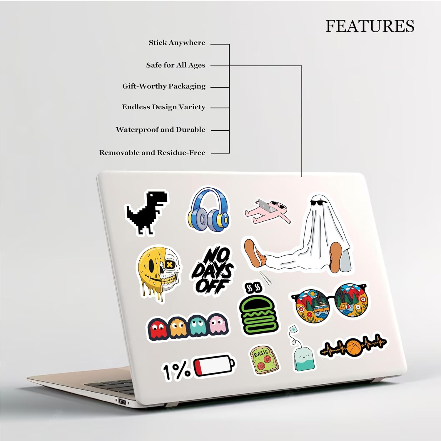🔄 No Repetition: Tired of sticker déjà vu? We've got you covered! Every sticker in our pack is unique and distinct. What you see in the image is exactly what you'll get. Our stickers are like your favorite song - easy to stick and unstick, whether you're indoors or outdoors.
