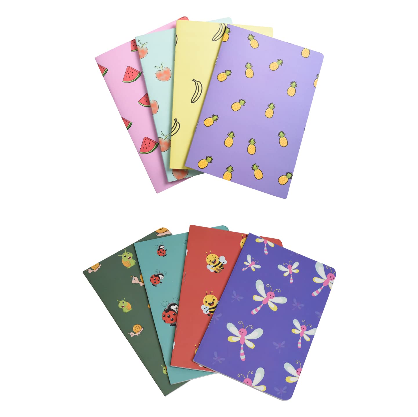 - SET OF 4: The set includes 4 notebooks- Pink watermelon, Yellow banana, Mauve pineapple and Blue apple