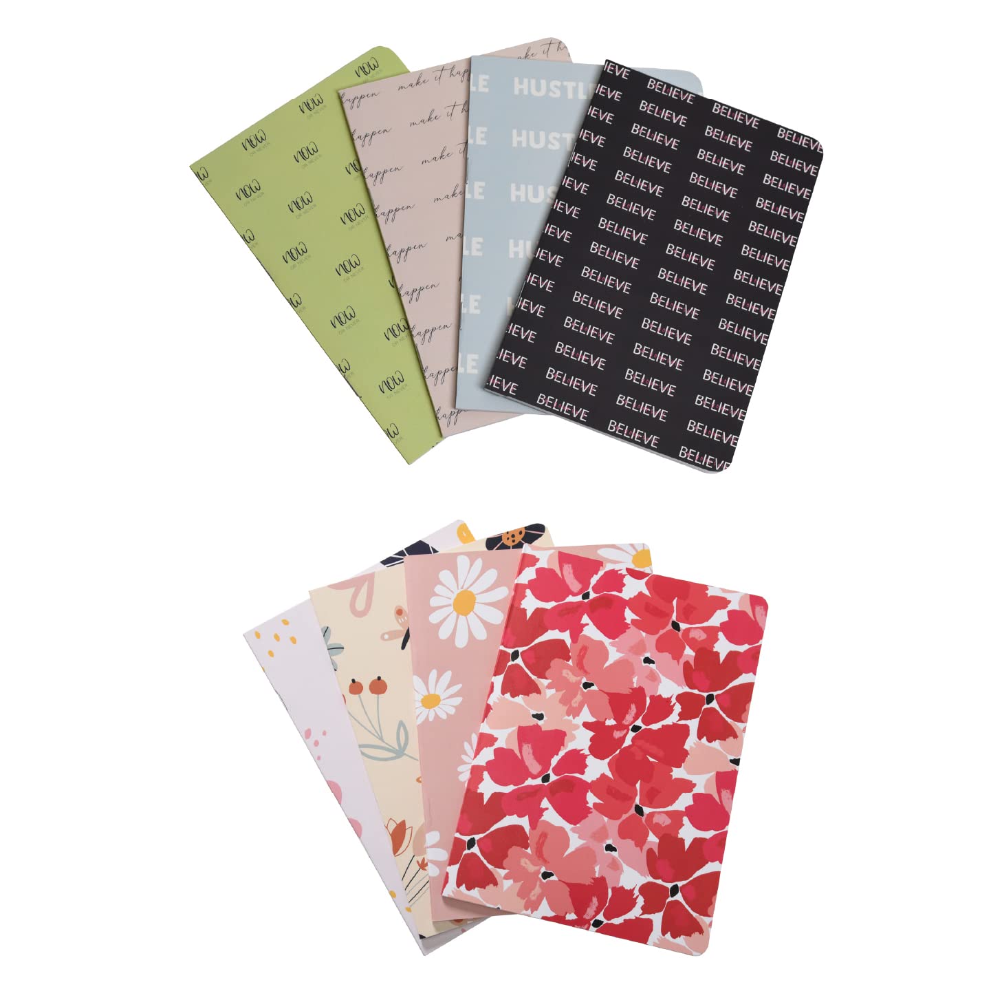 Papboo Handy A5 Size Notebook Set: With 8 notebooks, each containing 60 plain pages (480 pages total), this set is ideal for everyday writing and creative pursuits. Featuring rounded corners and a 300 GSM matte-laminated cover, these notebooks are durable and stylish. Whether you're doodling, drafting, or tracking your moods, this set provides ample space for all your endeavors. Perfectly sized for on-the-go use, these notebooks are versatile companions for writers, artists, and thinkers alike. Unlock your creativity with the Papboo Handy A5 Size Notebook Set.