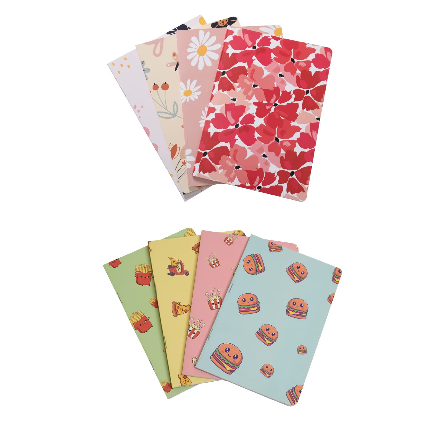Papboo Handy A5 Size Notebook Set: With 8 notebooks, each containing 60 plain pages (480 pages total), this set is ideal for everyday writing and creative pursuits. Featuring rounded corners and a 300 GSM matte-laminated cover, these notebooks are durable and stylish. Whether you're doodling, drafting, or tracking your moods, this set provides ample space for all your endeavors. Perfectly sized for on-the-go use, these notebooks are versatile companions for writers, artists, and thinkers alike. Unlock your creativity with the Papboo Handy A5 Size Notebook Set.